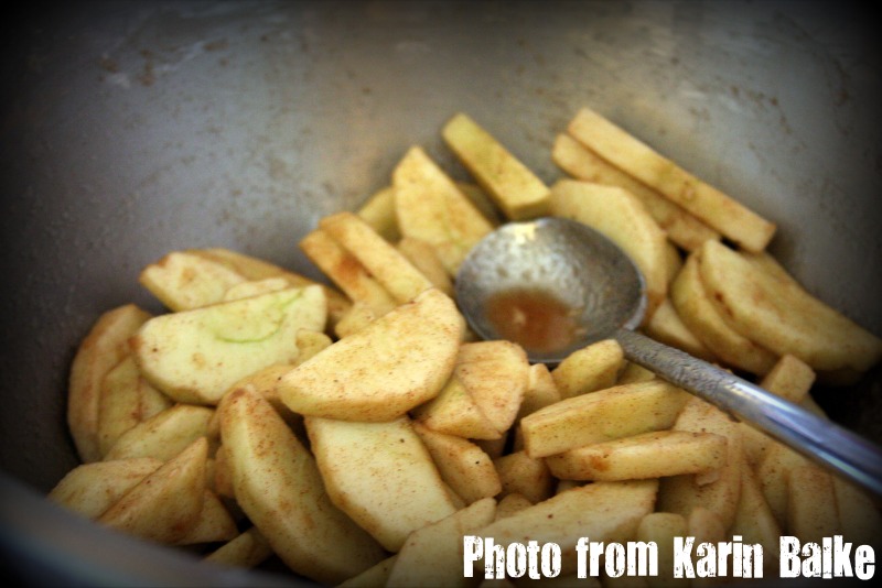 - Make the filling. In a medium bowl, toss the apple slices, sugar, cornstarch, lemon juice, vanilla, cinnamon, salt, and nutmeg together.