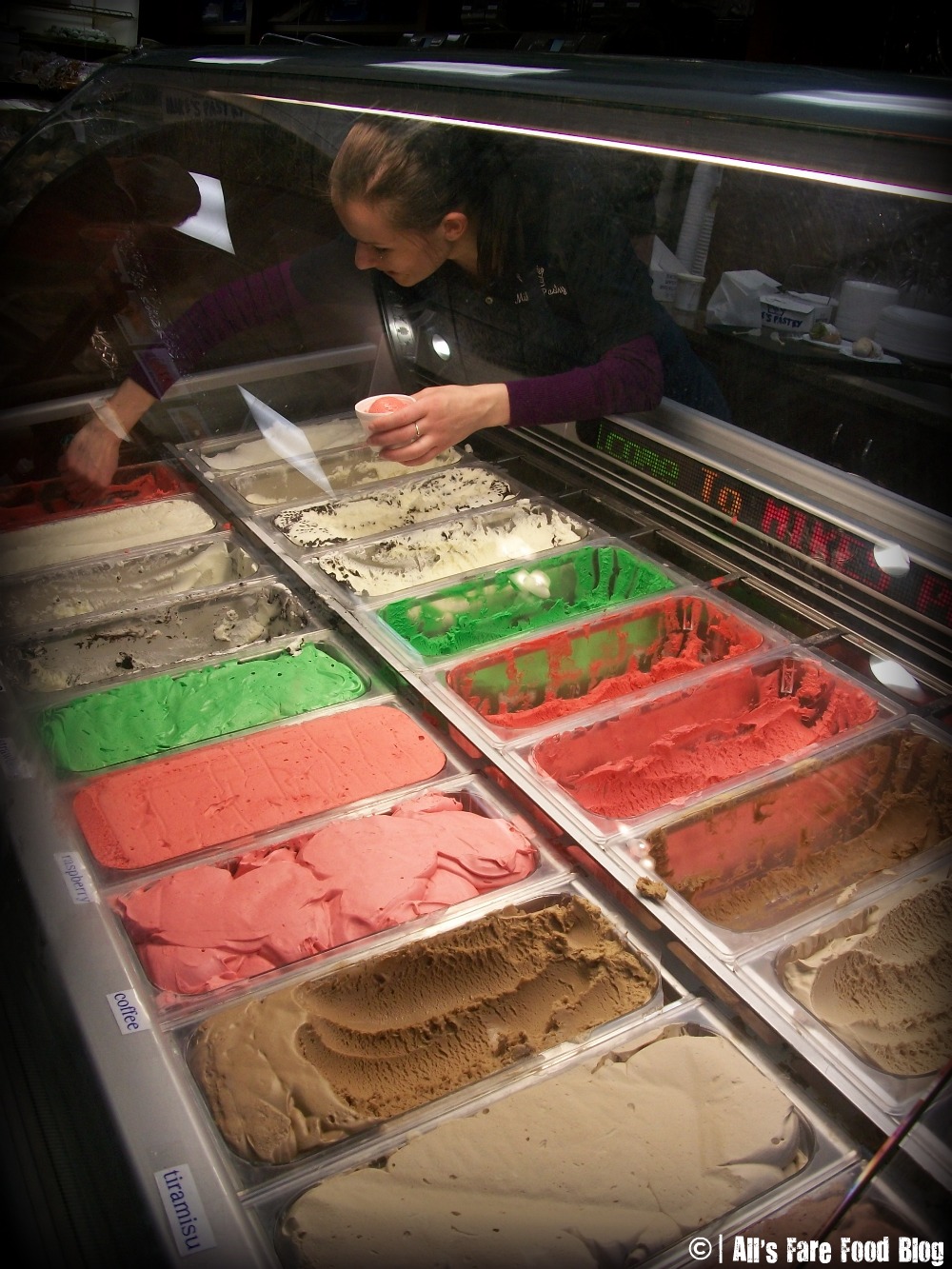 There are some places where you will always remember the first time you visited. Mike’s Pastries in Boston’s North End is one of those places for me. Every time I walk through the doors, I am reminded of the summer of 2004. It was my first summer in Boston during grad school. My fellow Emersonian and friend Angela and I had been spending the summer break from school experiencing some of the city’s best food finds like the produce market at Haymarket near the Boston Garden (the Fleet Center or whatever it happened to be called at the time).