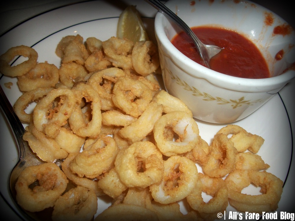 Brett and I started our meal off with the fried calamari appetizer served with a side of marinara sauce. The calamari was tender and juicy. Our dining companion - Brett’s dad Mike - who we were celebrating both of their birthdays for this special evening - enjoyed a specially-made tomato and mozzarella salad served with balsamic vinegar.