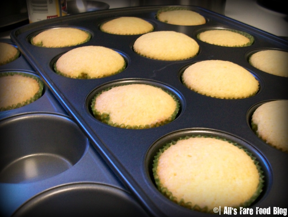 Fill the cupcake tins to 2/3 full using an ice cream or cookie scoop. Bake for 20 minutes until a toothpick inserted into the center comes out clean.