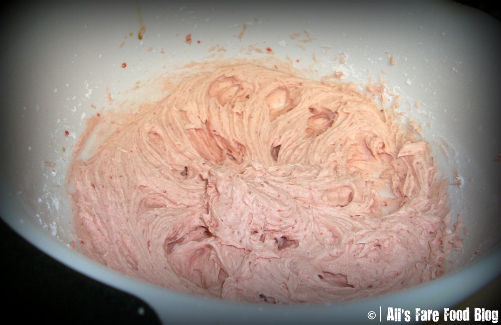Start by beating the butter until soft. Then, add in 3 cups of powdered sugar and blend. Add the strawberry puree to the mixture and beat until combined. Next, add the vanilla and mix. Add more powdered sugar until the frosting is to the consistency that you like.