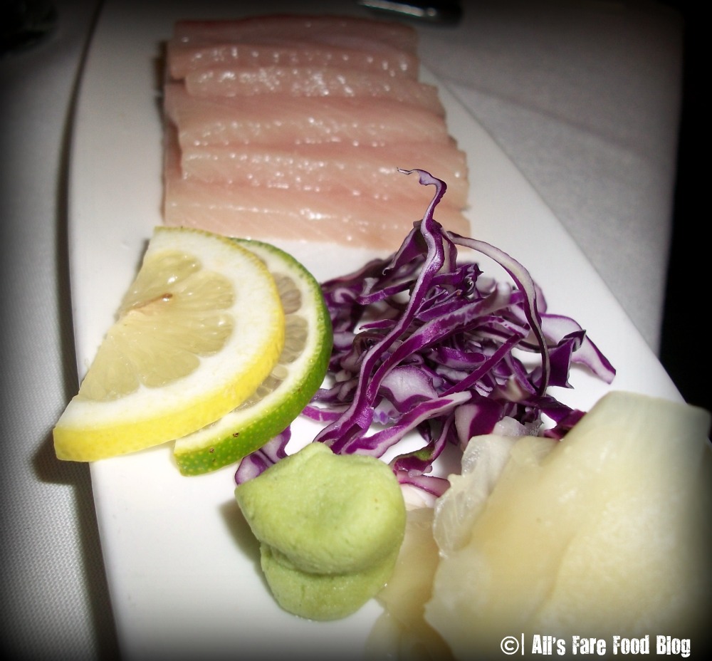 The ambience of the restaurant transports you to Japan. Think lots of wood, bamboo and the waitstaff wearing traditional kimonos. I felt like Mr. Miyagi was going to jump out from behind the sushi chefs. However, I felt it was kinda weird that they had a fish tank (full of live fish - not the kind you would eat - more goldfish and guppies) right next to the sushi chefs artistically hacking up their cousins.