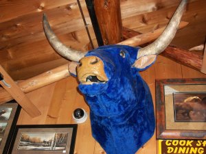 Babe the Blue Ox greets visitors at Paul Bunyan's Cook Shanty.