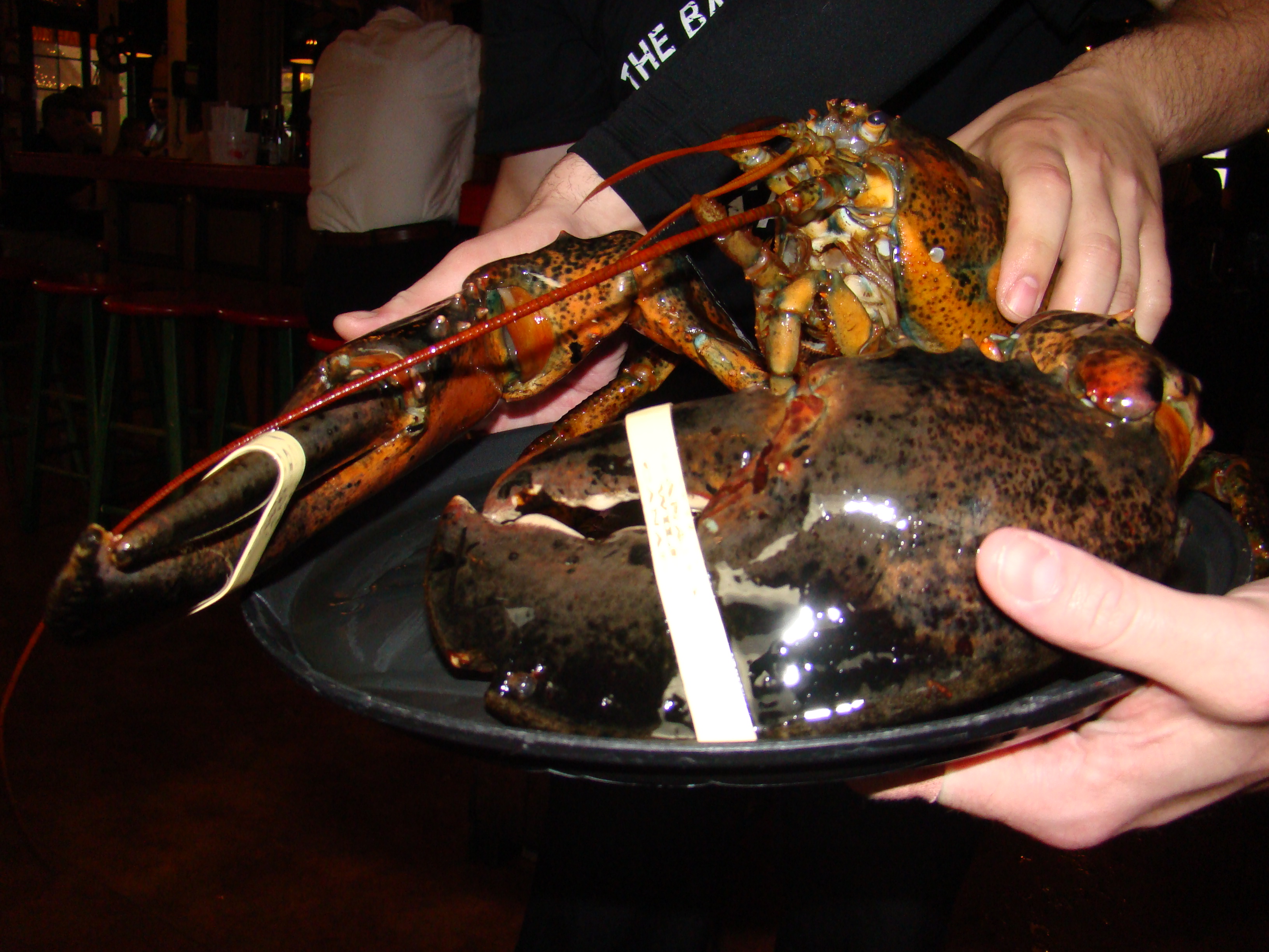 Remembering that Adam Richman saw a 15-pound lobster on Man v. Food, we needed to check out their monstrous lobsters. I had no idea how massive these things could get. It took two waiters to bring a 10-pound lobster to our table. I can’t imagine the meat would be all that tender in a lobster that size, but if anyone has tried it and can disprove that, please let me know. However, the 1.25-pound lobsters were great. They’re fresh, meaty and oh-so-good. You don’t need to slather it in butter. It has a richness on its own that you have to try.