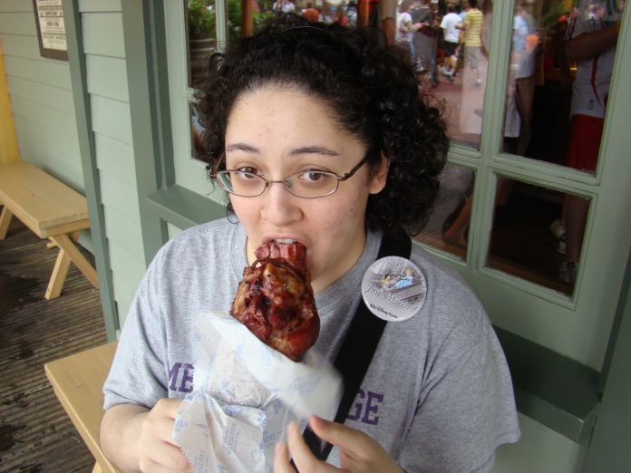 On my honeymoon (the Disneymoon as we like to call it), dear hubby and I purchased our turkey leg and munched on it proudly. There’s something about chomping on the juicy turkey leg as you’re sitting outside The Country Bear Jamboree and watching throngs of people stroll merrily on their way to ride Splash Mountain or Big Thunder Mountain Railroad.