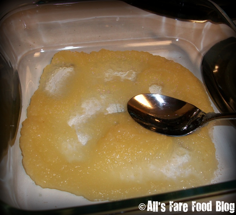 In an 8×8 square baking dish, spread the apple sauce in the bottom of the dish. Season the pork on both sides with salt and pepper and lay on top of the apple sauce.