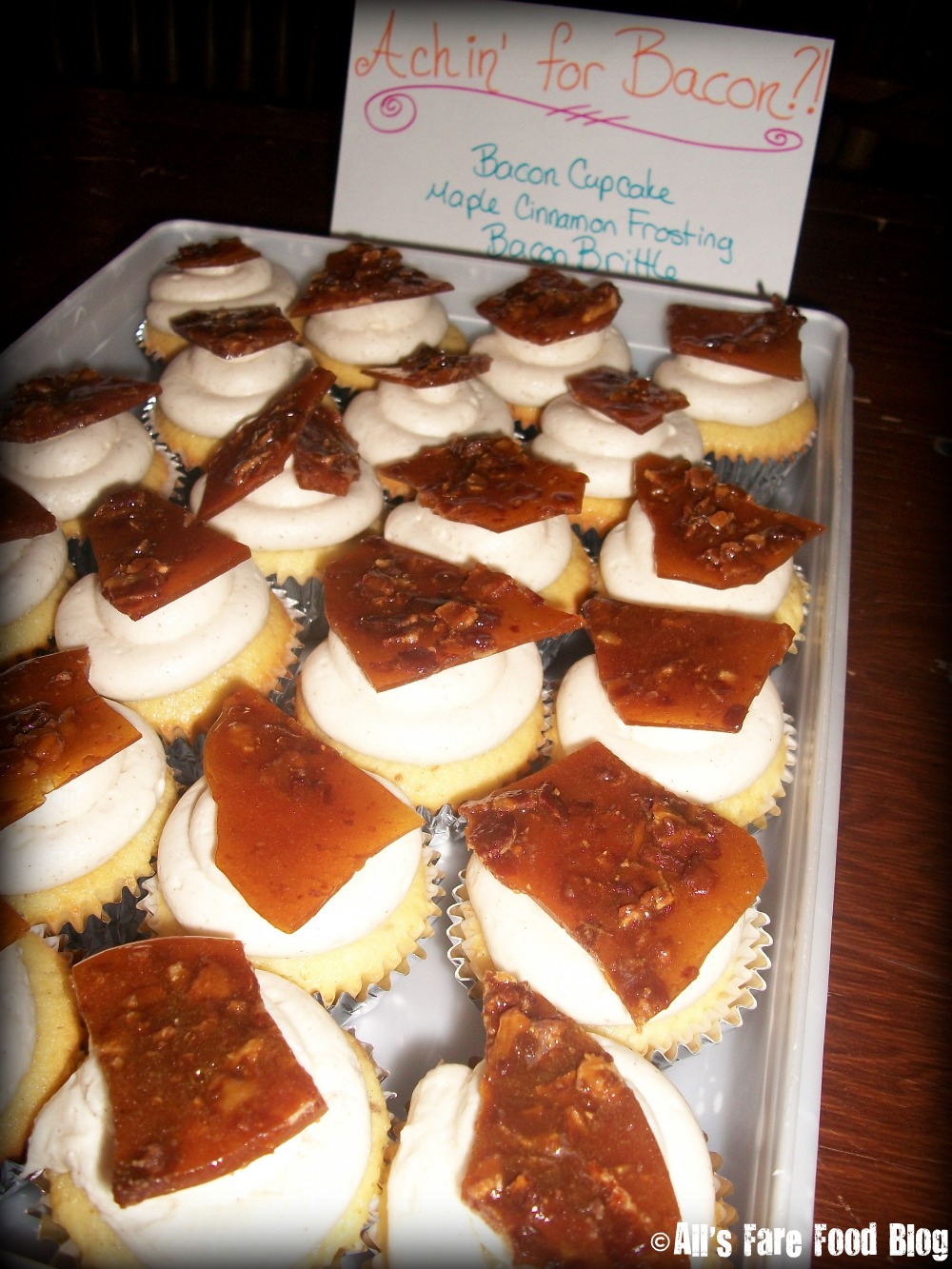 I really wanted to like these bacon cupcakes with bacon brittle and maple syrup frosting but something was just way too strange about the cake with bacon pieces - even for me. However, the maple syrup frosting was really good, albeit very sweet.
