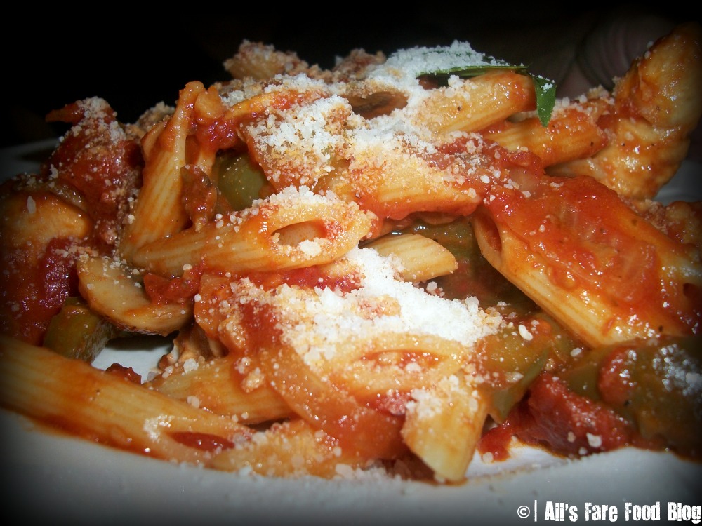 Mike wanted something a little spicy for his main course, so he worked with Franco to create this dish similar to a chicken cacciatore. The ziti pasta was smothered in a spicy red sauce filled with peppers, onions and hunks of tender chicken.