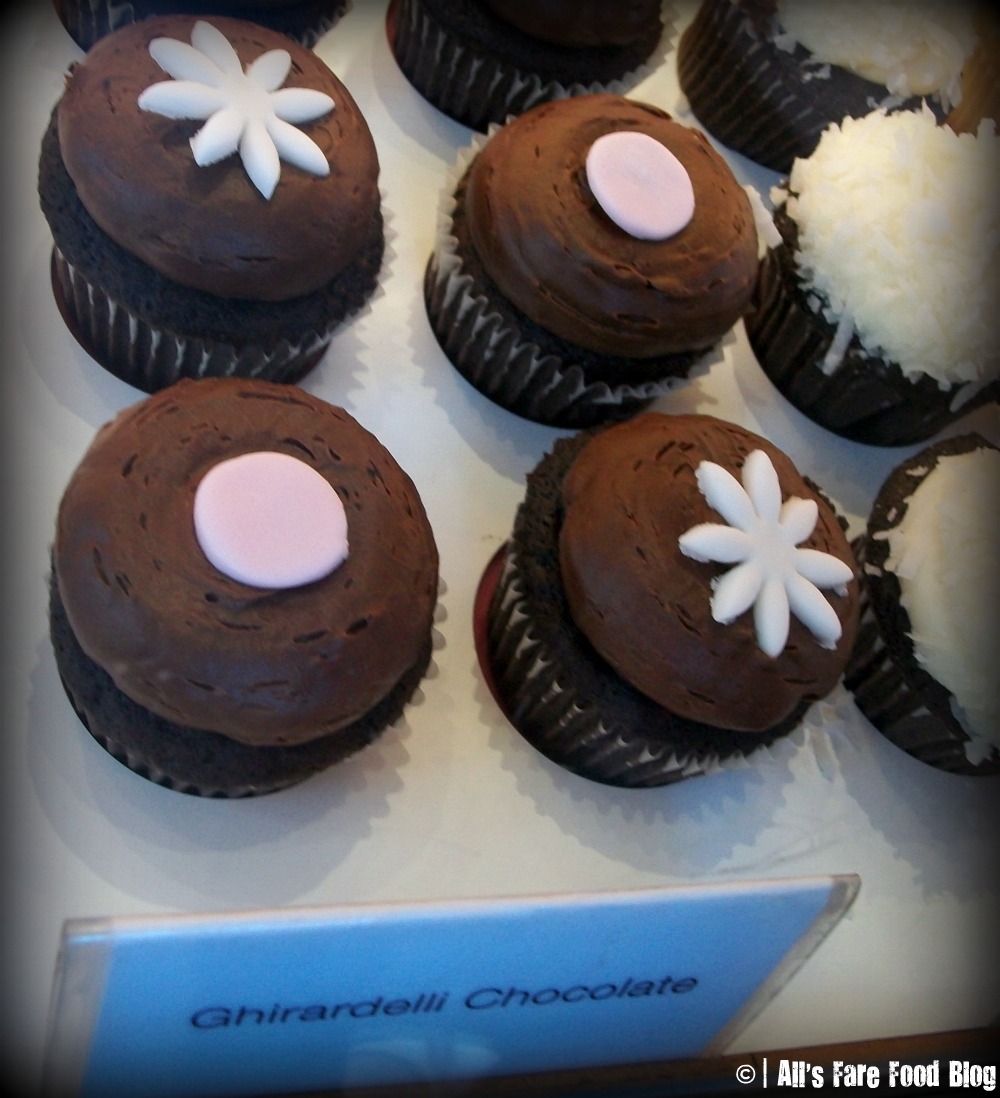 When I was recently in San Francisco for work, I walked to the wharf area so I could hit Ghirardelli Square, the Mecca for chocolate lovers. While roaming the little shopping area, I came across Kara’s Cupcake’s. Even though I didn’t indulge to try one of her cuppies, I did grab a few pictures. (Sorry, I had to save room for the massive hot fudge sundae I was about to inhale all by myself! I know it’s a tough job I have…)
