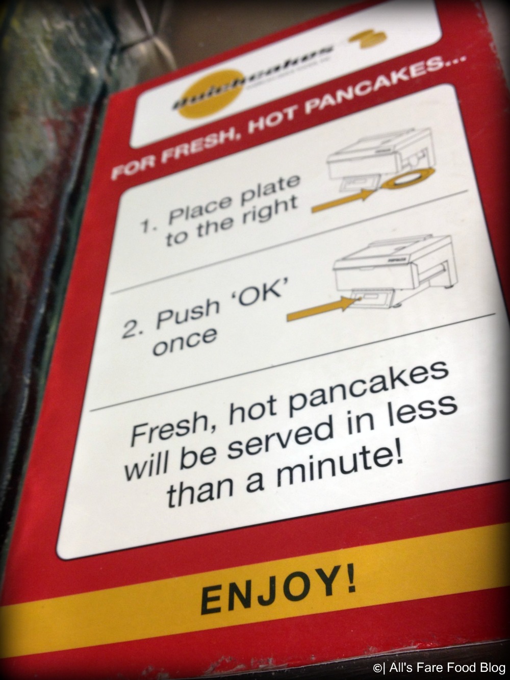 I eagerly awaited my pancakes as they traveled down the conveyor belt. In about a minute, I finally saw a little glimpse of them. They were golden brown and, surprisingly, looked like pancakes.